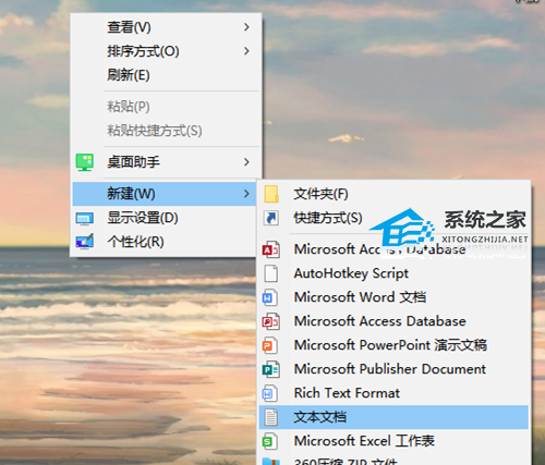 1. 在桌面空白的地方,点击【右键】,打开的右键菜单项中,选择【新建 - 文本文档】;