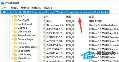 2. 打开后,定位到“计算机\HKEY_CURRENT_USER\Software\Microsoft\Windows\CurrentVersion\Explorer\Shell Folders”位置。