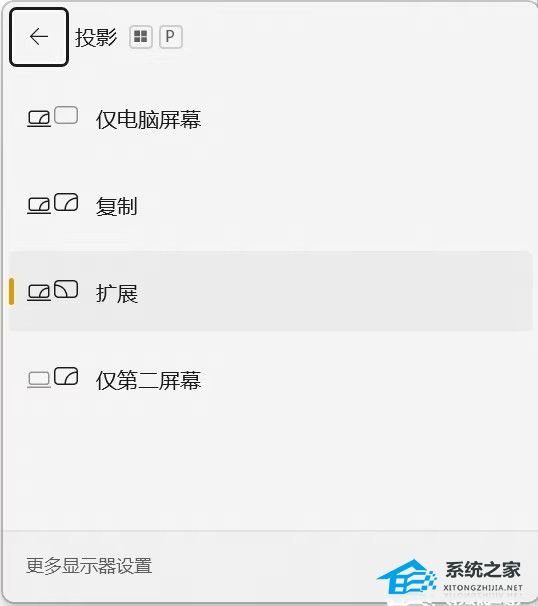 4. 使用“Windows徽标键+P键”切换到显示模式。