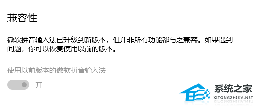 以上就是系统之家小编为你带来的关于“Win10微软拼音输入法的兼容性按钮变灰色怎么办”的全部内容了,希望可以解决你的问题,感谢您的阅读,更多精彩内容请关注系统之家官网。