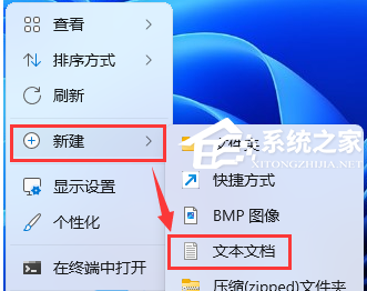 1. 桌面空白处,点击【右键】,在打开的菜单项中,选择【新建 - 文本文档】;