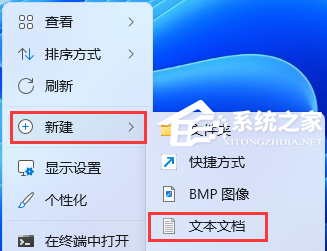 1. 在桌面空白的地方,点击【右键】,打开的右键菜单项中,选择【新建 - 文本文档】;