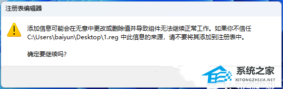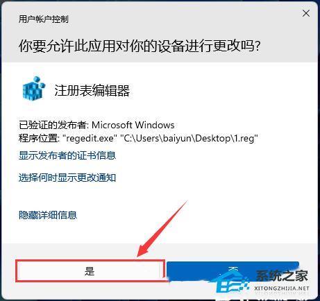 6. 注册表编辑器提示框,确定要继续吗?点击【是】;
