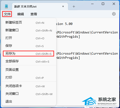 3. 接着点击左上角的【文件】,在打开的下拉项中,选择【 另存为 (Ctrl + Shift + S) 】;