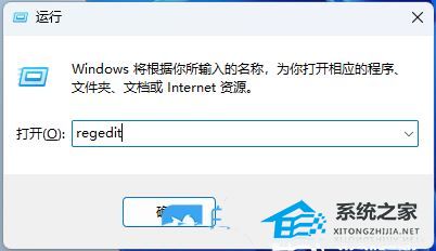 2. 运行窗口,输入【regedit】命令,按【确定或回车】可以打开注册表编辑器。