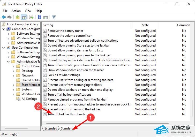 导航到以下位置:User Configuration/Administrative Templates/Start Menu and Taskbar 。
