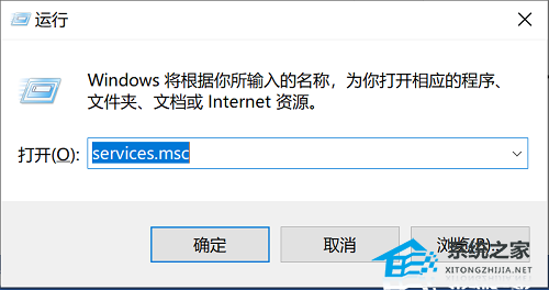 在打开的运行对话框中输入“services.msc”命令,点击确定。