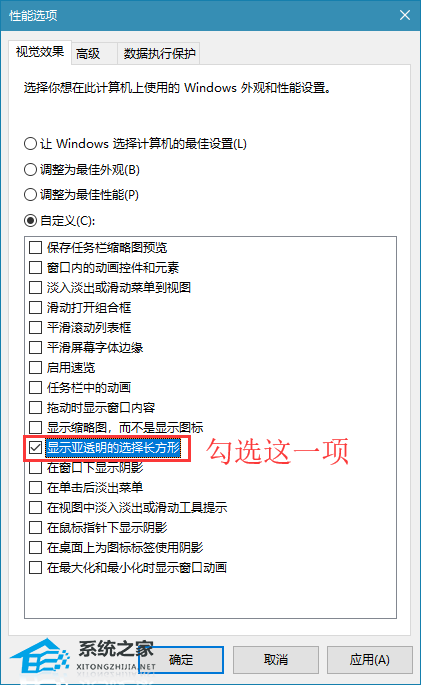 4. 然后找到其中的”显示亚透明的选择长方形“,最后将其小方框给勾选上就可以了。