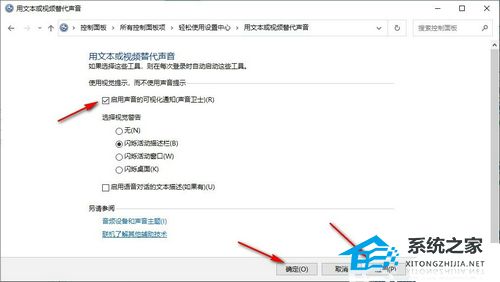 5. 点击勾选“启用声音的可视化通知”选项之后,点击确定保存即可。