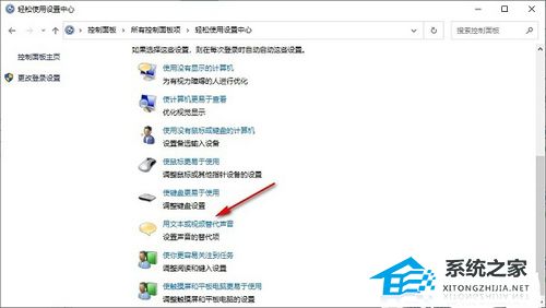 3. 进入轻松使用设置中心页面之后,点击打开“用文本或视频替代声音”选项。