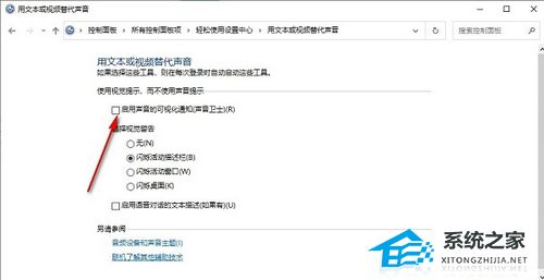 4. 进入“用文本或视频替代声音”页面之后,我找到“启用声音的可视化通知”选项,将该选项进行勾选。