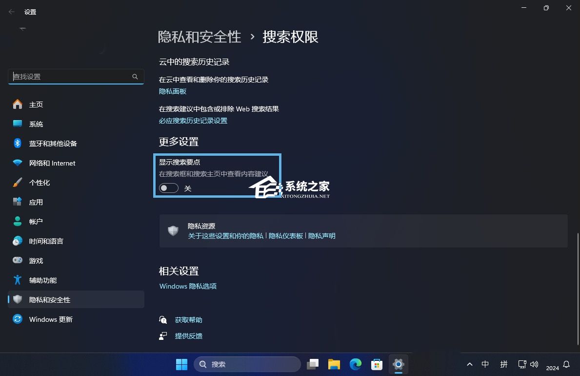 以上就是系统之家小编为你带来的关于“Win11启用/禁用搜索要点功能的三种方法-【图文】”的全部内容了,希望可以解决你的问题,感谢您的阅读,更多精彩内容请关注系统之家官网。