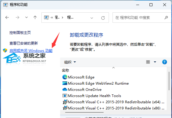4. 程序和功能窗口,左侧点击【启用或关闭 Windows 功能】。
