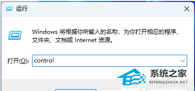 2. 运行窗口,输入【control】命令,按【确定或回车】可以打开控制面板。