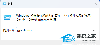 2. 运行窗口,输入【gpedit.msc】命令,然后按【确定或回车】打开本地组策略编辑器。