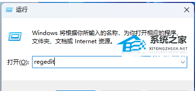 2. 运行窗口,输入【regedit】命令,按【确定或回车】可以打开注册表编辑器。