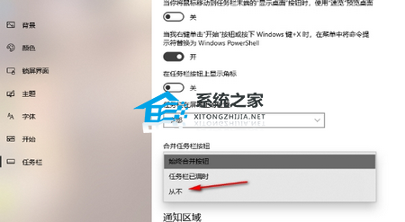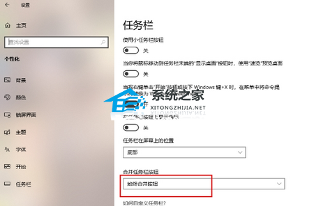 3. 在打开的页面中,在右侧页面找到【合并任务栏按钮】选项,将下拉列表点击打开。