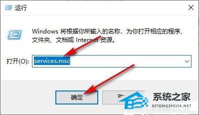 2. 打开运行选项之后,我们在运行窗格中输入“services.msc”,再点击打开“确定”选项。