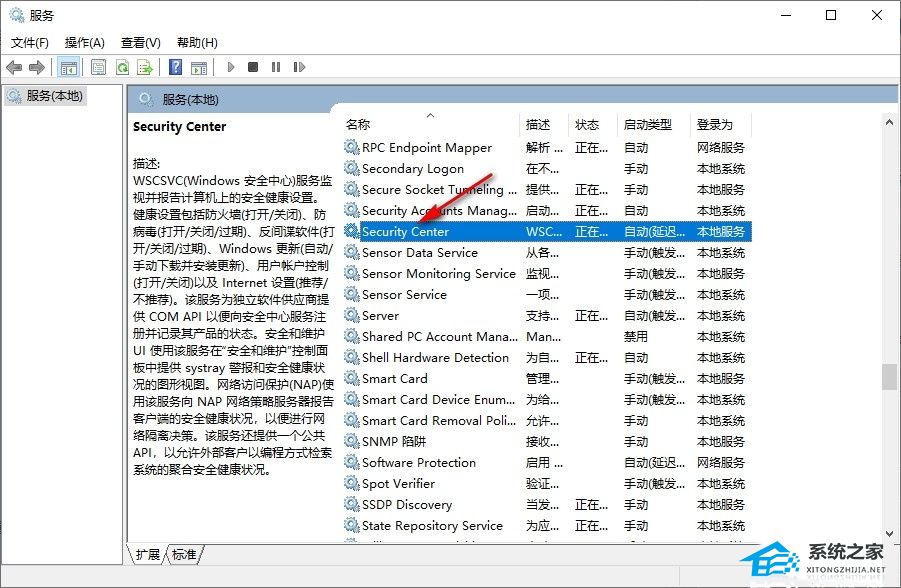 3. 打开服务窗口之后,我们在服务页面中鼠标下划找到“Security Center”服务。