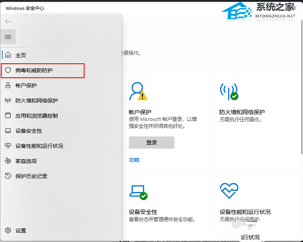 3. 随后在新的界面中,需要点击左侧栏中的“病毒和威胁防护”。