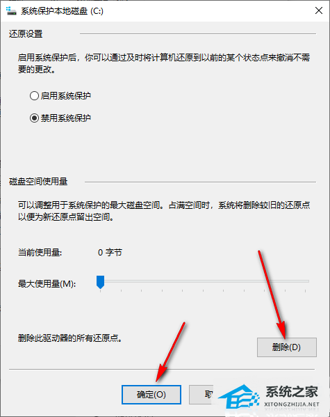 以上就是系统之家小编为你带来的关于“Win10怎么删除系统还原点-快速删除系统还原点的方法”的全部内容了,希望可以解决你的问题,感谢您的阅读,更多精彩内容请关注系统之家官网。