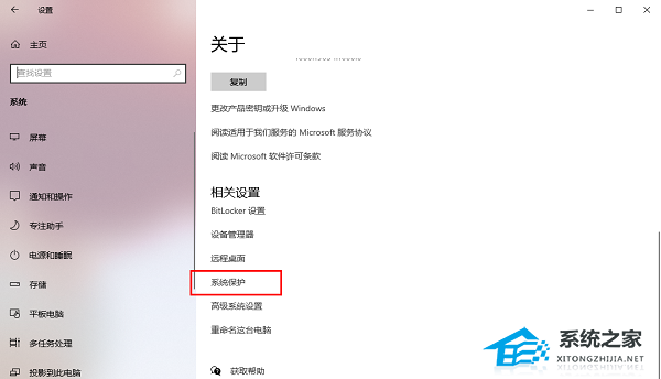 2. 进入到新的界面之后,需要滚动鼠标,点击“相关设置”一栏中的“系统保护”选项。