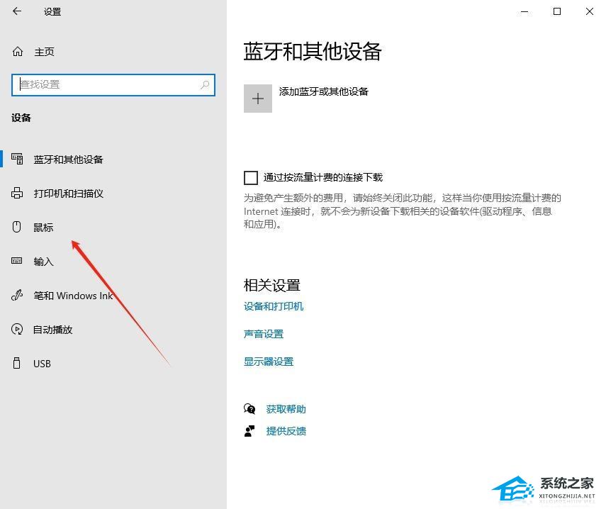 2. 接着,在打开的界面中,点击左侧的“鼠标”设备。