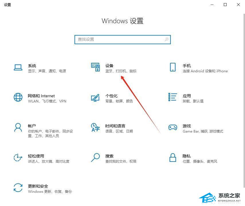 1. 首先,按下“Win+I”键打开设置界面,再点击进入到“设备”设置。
