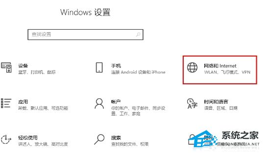 2. 在弹出一个设置窗口,将其中的【网络和Internet】选项进行左键点击进入。