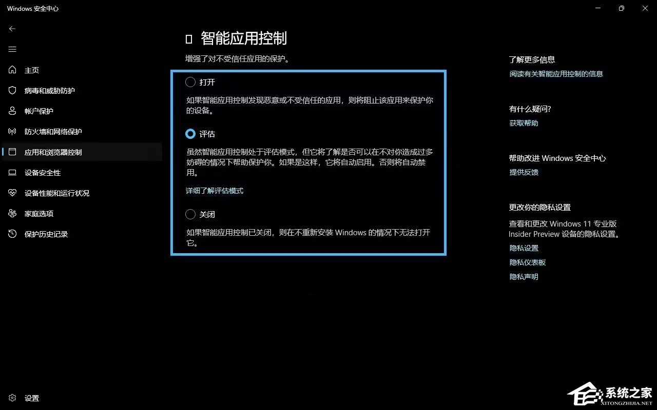 在初次检测时,SAC会以「评估」模式运行。在这个阶段,Windows会监测你的应用使用情况,来评估当前系统环境是否适合开启SAC。