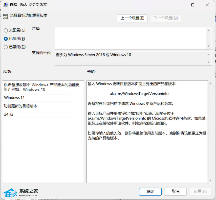 配置组策略:打开本地组策略编辑器(按下 Win+R 组合键,输入 “GPEDIT.MSC” 并回车)。依次展开 “计算机配置 - 管理模板 - Windows 组件 - Windows 更新 - 管理从 Windows 更新提供的更新”,选中 “选择目标功能更新版本”,将其设置为 “已启用”,并填入产品版本 “Windows 11”,目标版本 “24H2”。完成设置后,回到 “Windows 更新” 界面点击刷新。