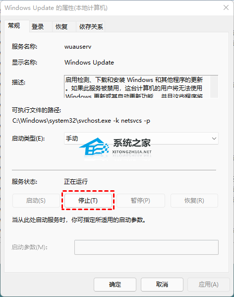2. 找到 “Windows Update” 选项,右键单击并选择 “属性”,点击 “停止” 按钮停止该服务。