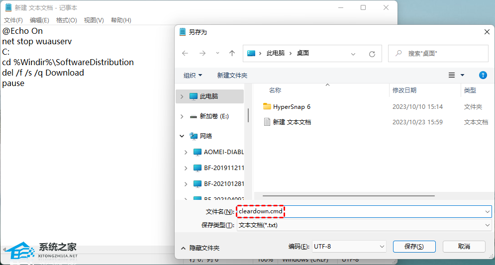 2. 将文件以 “Cleardown.cmd” 为名保存在桌面上。