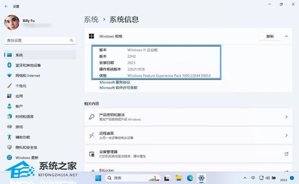2. 在右侧的「Windows 规格」部分可以看到当前 Windows 版本的详细信息。