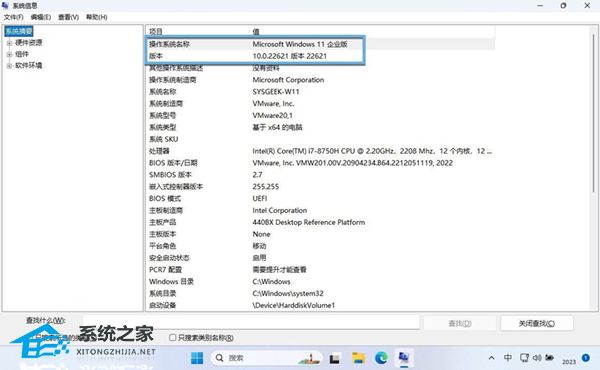 「系统信息」工具可以查看计算机各个组件的详细信息,其中就包括 Windows版本:
