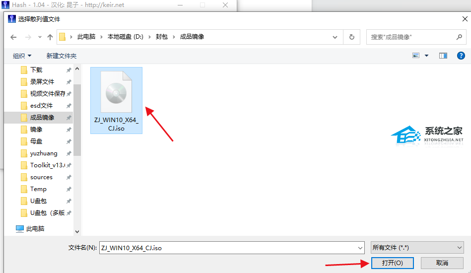 3. 出现的文件列表中,找到下载的系统镜像,选择后点击打开,如下图。