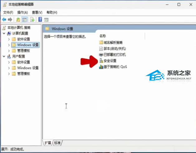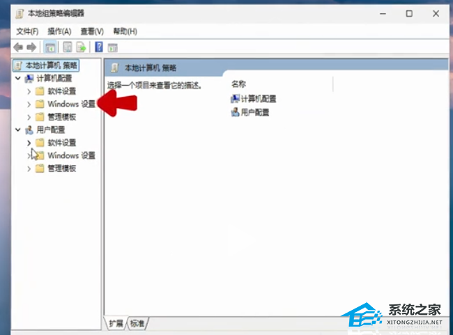 2. 打开本地组策略编辑器后点击“计算机配置”下的“Windows 设置”。