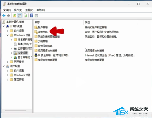 4. 菜单列表中点击“本地策略”。