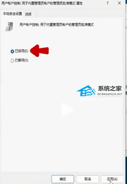 7. 选择“已启用”,随后点击“应用和确定”。