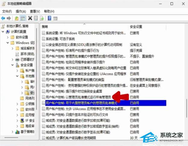 8. 找到“以管理员批准模式运行所有管理员”双击打开。